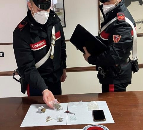 Una volta perquisito nella tasca del suo giubbotto e nello zaino che portava con se i militari hanno trovato oltre un etto di hashish e sei grammi di cocaina.