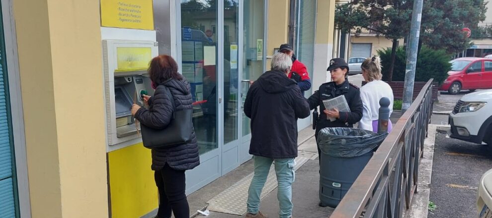 Carabinieri davanti agli uffici postali per sensibilizzare gli anziani su un tema che oramai è all’ordine del giorno: quelle delle truffe.