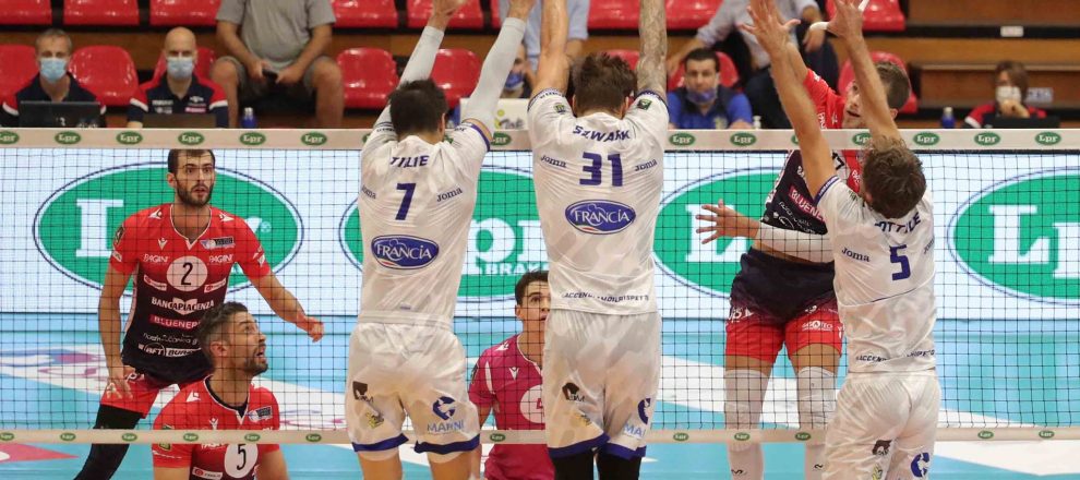 La Top Volley inizia con una vittoria pesante (1-3) la sua avventura nella Del Monte Coppa Italia. I pontini, trascinati da Randazzo (16 punti) e al termine di una prova di squadra di grande impatto, tornano da Piacenza con un successo di grande importanza contro una formazione di altissimo livello, profondamente rinnovata e con ambizioni notevoli. Il match era valido come gara 1 degli ottavi di finale della manifestazione tricolore. «La chiave della partita? Il gruppo sicuramente, tutti hanno giocato con un atteggiamento molto chiaro, per noi era una prima uscita, abbiamo lottato e tenuto duro con la testa anche quando eravamo sotto, siamo stati bravi in battuta e abbiamo tenuto il loro Side-out sotto pressione i numeri nono sono stati altissimi da una parte e dall’altra ma questo vuol dire che siamo stati bravi a risolvere le situazioni in una partita tirata – spiega coach Tubertini, visibilmente soddisfatto a fine set – Dobbiamo tenere alto il morale, è un punto di partenza. Onwuelo è stato determinante per un paio di set, questo è normale quando dall’altra parte hai giocatori come Grozer, è entrato Oreste e ha dato ulteriore spinta. Ora dobbiamo essere concentrati su Ravenna ma chiaramente ci godiamo questa bella vittoria, la sottolineamo, vuol dire che il lavoro è stato buono, siamo arrivati con qualche problema fisica con Seganov e Sabbi da gestire ma ora torniamo a casa e lavoriamo». In avvio coach Lorenzo Tubertini schiera Sottile in cabina di regia in diagonale con Onwuelo, di banda Tillie e Randazzo, al centro Krick e Szwarc con Cavaccini libero.