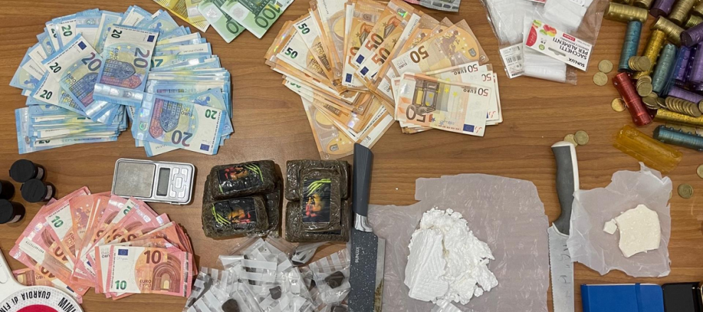 Dopo aver osservato i loro movimenti, i militari hanno deciso di eseguire una perquisizione domiciliare nell’immobile, che ha permesso di rinvenire, oltre alla droga pronta per lo smercio, strumentazione per il taglio e oltre 8.500 euro in contanti.